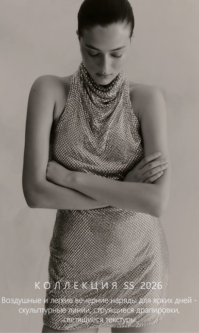 изысканной драпировкой и отделкой уровня кутюр.Каждое изделие продумано до мелочей: